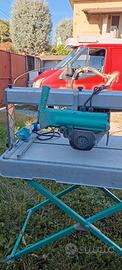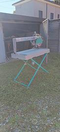 Dotata di versatilità di posizionamento del disco: taglio verticale (90°) rispetto al piano di appoggio o taglio in posizione inclinata compresa tra 90° e 45° (in ogni posizione viene mantenuta la regolazione della profondità). Eliminazione dell'effetto di scheggiatura della superficie tagliata (lucida, smaltata, porcellanata) grazie alla penetrazione del disco dall'alto verso il basso (il disco taglia prima la parte smaltata e poi il materiale di supporto). Posizionamento del taglio a 45° in soli 10 secondi senza l'ausilio di alcun attrezzo. Impianto elettrico protetto contro l'avviamento accidentale e sovraccarico, fornita di trasmissione diretta della potenza del motore al disco. Flusso continuo di acqua al disco di taglio tramite pompa elettrica e regolato tramite apposito rubinetto, per consentire il corretto raffreddamento e il taglio ottimale. Tutte le parti a contatto con l'acqua sono realizzate in alluminio estruso anodizzato o pressofuso, trattato con procedimento antiossidante per una protezione totale della corrosione. Elevata scorrevolezza e precisione di taglio: elementi di scorrimento della testa di taglio con ruote montate su cuscinetti a sfera a tenuta stagna.