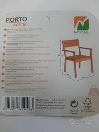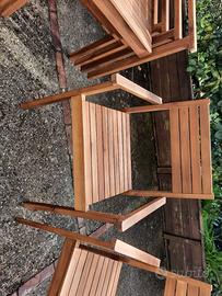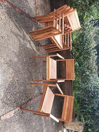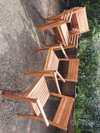 Dieci seggiole con braccioli in legno di acacia, impilabili, uso da giardino, veranda, terrazzo. Mai usate, in ottimo stato come nuove. Vendita preferibilmente riferita al territorio provincia di Perugia per difficoltà di consegna.