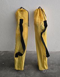 Vendo due sedie pieghevoli da campeggio chiudili ad ombrello, leggere e pratiche, ciascuna con la propria sacca per il trasporto. Mai utilizzate ed in ottime condizioni, ideali per il campeggio, la pesca, il pic nic, il mare o semplicemente da tenere in auto per l'occorrenza. Vendo a 22 euro la coppia. Per ricerca: seggiola / poltrona / sdraio.