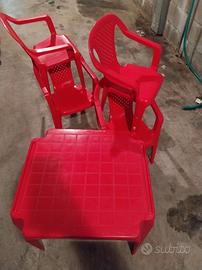 vendo 4 seggioline ed un tavolino fucsia. perfetto!