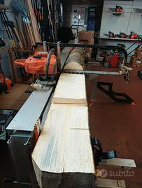 Vendo segheria Logosol Farmer's sawmill completa di motosega, lunghezza carrello 4,5 mt con borse originali per ritirarla quando è smontata