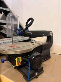 USATO POCHISSIMO •Seghetto ideale per tagliare legno e derivati, plastica, materiali espansi, gesso, alluminio e plexiglass •Possibilità di eseguire tagli dritti, inclinati e sagomati •Funzione soffiaggio polveri della zona di taglio