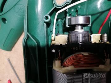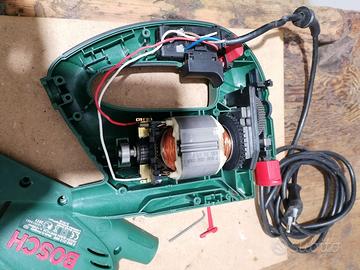Vendo seghetto alternativo Bosch PST 650. Il seghetto al momento non funziona, perché vanno sostituiti i carboncini. Sono piccole spazzole al carbonio che si infilano nelle guide dorate visibili nella terza foto. Ho messo uno screenshot preso dal sito che le vende. Io non ho tempo di ripararlo, quindi lo vendo PER PEZZI. L'ho smontato, pulito e soffiato col compressore, poi rimontato. Ci sono tutti i pezzi, non manca niente.