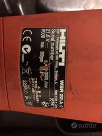 Seghetto frontale Hilti WSR 22-a. Batteria compresa, ma senza carica batteria. Compresa scatola e manuale istruzioni. Solo ritiro, senza spedizione, Roma zona EUR.