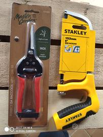 Seghetto manuale Stanley, più forbici manuali per raccolta frutta e piccole potature , il tutto nelle sue confezioni originali mai usate