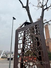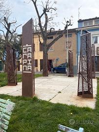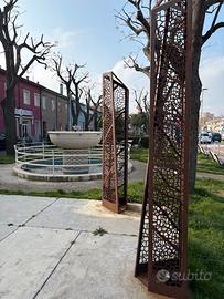 Sei colonne in Corten di altezza di circa 250/270cm comprensive di vela ombreggiante. Attualmente in uso su un'area di 7x5mt, una delle colonne include un logo rimuovibile