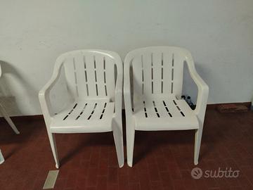 sei sedie in plastica rigida da giardino o da terrazzo di colore bianco