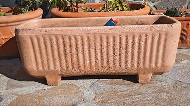 Vasi in resina, ne ho 6… vasi di ottima qualità, rettangolari, no plastica, ottima qualità, misure altezza da terra 26 cm , larghezza 24 cm e lunghezza 66 cm. Colore come da foto, non poggiano a terra ma hanno un utilissimo rialzo per drenaggio. SOLO RITIRO A CIAMPINO. Se acquistati tutti e sei, faccio 100 euro. Il prezzo è per singolo vaso . il prezzo è un terzo di quello dei vivai, per favore non chiedete ulteriori sconti!!!