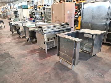 in pratica si tratta di un arredo completo per ristorazione collettiva: mensa aziendale, tavola calda, pranzi di lavoro, etc. tutti gli elementi sono stati smontati da noi con cura e tenendo fino all'ultima vite in modo che il cliente non abbia difficoltà di montaggio, purtroppo il frigo di un modulo è da riparare (vedi foto). i moduli sono così suddivisi:
