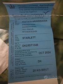 SEMENZA TAPPETO ERBOSO PRATO SPORTIVO FESTUCA A. 20KG SEMI ERBA SEMENTI 10/24