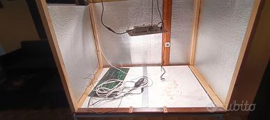 Vendo semenzaio riscaldato o Grow Box autocostruito come da foto con due sistemi di riscaldamento per i vassoi di piantine, e un sistema di illuminazione con potenziometro di regolazione della luminosità e regolatore della distanza dalle piantine. I due sistemi di riscaldamento sono i due tipi più usati ovvero il tappetino riscaldato e il filo/ resistenza elettrica . La struttura del semenzaio ha le seguenti dimensioni d'ingombro: larghezza 110 cm , profondità 75,5 cm,altezza 89 cm . Il semenzaio riscaldato è comprensivo di tutto quanto menzionato sopra più un termometro di controllo della temperatura interna, il temporizzatore per l'accensione e spegnimento della lampada( per la simulazione notte/giorno) e un termostato da usare con il cavo/resistenza per regolare l'accensione e lo spegnimento di quest'ultima. Il tappetino riscaldato è già munito del suo termostato di regolazione. Per qualsiasi chiarimento in merito contattatemi e lasciatemi un numero per essere richiamati. Vi richiamerò per fornirvi qualsiasi delucidazione in merito. Ritiro chiaramente in loco.
