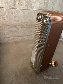 Descrizione: GBE 220H-30 Collegamenti: 2+2 x 1" - 20 mm Piastre: 30 kW: 50 Portata primario l/h 75°C / 50° C: 2150 Portata secondario l/h 50°C / 70° C: 2150 Perdita di carico primario mbar: 152 Perdita di carico secondario mbar: 133 Usato 1 stagione invernale Pedettamnete pulito i passaggi