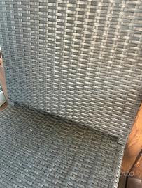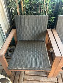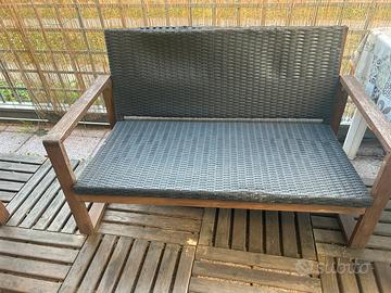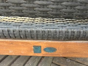 Vendo set giardino legno e rattan completo di divanetto 2 posti 2 poltrone completi di cuscini , certificato legno FSC alta qualità prezzo nuovo 900 euro .