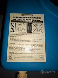 Vendo serbatoio per acqua in polietilene lineare ad alta densità, marca Cordivari, perfettamente integro e funzionante.