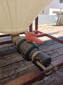 Serbatoio in plastica (PE) per chimici e alimenti, parallelepipedo rettangolare con struttura, capacità 1000 Lt, Mis. 1110 L x 1035 P x 1750 H mm, colore neutro