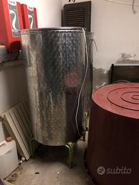 Serbatio inox 500litri per alimenti, completo di rubinetto, tappo, galleggiante, pompa per aria compressa, piedistallo