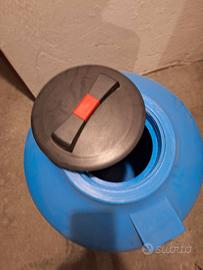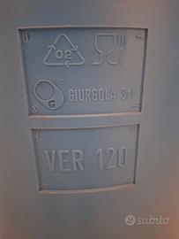 Contenitore cilindrico verticale da 120 litri con boccaporto centrale completo di coperchio filettato e sfiato, idoneo al contenimento di prodotti liquidi alimentari, resistente agli agenti atmosferici (da -40 °C a + 60 °C) e all'esposizione ai raggi ultravioletti, adatto per impiego in ambiente di alta montagna e marino. Riciclabile al 100% in quanto prodotto con polietilene atossico.