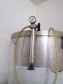 Vendo serbatoio per liquidi (vino/olio/acqua) in acciaio inox. Il serbatoio è dotato di chiusura ermetica con camera d'aria, manometro, e rubinetto, come da foto. La capienza massima è di circa 500 litri. Vendo a 240 euro trattabili