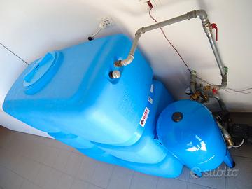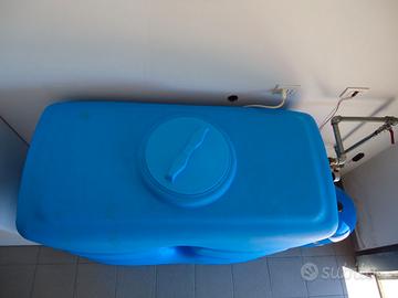 Serbatoio cisterna polietilene Elbi, capacità 1000 litri, può contenere acqua potabile o altri liquidi comprese sostanze chimiche, dimensioni cm 140Lx67Px142H, peso a vuoto kg 41, in perfette condizioni come nuovo, utilizzato sempre all'interno dell'abitazione come parte di impianto autoclave, può essere posizionato anche all'esterno fuori terra. 170€