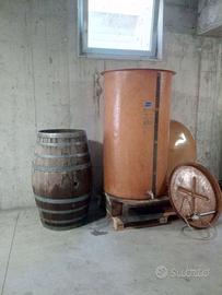 Causa inutilizzo vendo serbatoio "sempre pieno" da 700 litri in vetroresina per uso alimentare ( vino, olio). Integro e completo di chiusura con camera d'aria alimentare, pompa in acciaio inox, coperchio copri polvere, rubinetto in acciao inox. Altezza 145 cm. , diametro 85 cm. In omaggio barrique in rovere da 300 litri usata idonea solo per arredo.