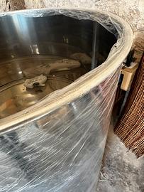 Serbatoio/cisterna/contenitore in acciaio inox per lo stoccaggio di olio/vino completo di piedistallo, rubinetto e coperchio a pressione. Mai usato, ancora nell’involucro come si puo vedere dalle foto.