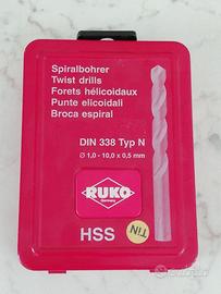 Serie 19 punte elicoidali per metallo professionali al TITANIO rettificate in pratica cassetta DRILLBOX 1-10x0,5mm HSS TiN DIN 338 Type N RUKO (MADE IN GERMANY).