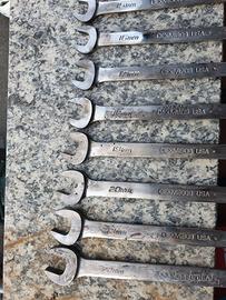 Vendo set chiavi USA snap on 13 pz misure 10-22mm Le chiavi mostrano segni di usura ma le forchette e gli anelli SONO PERFETTI, GRIP STRAORDINARIO. QUESTO SET NUOVO COSTA 600 EURO. Cedo a 130 euro INTRATTABILI.