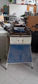cedo attrezzature serigrafiche, usate poche volte. giostra 4 colori per magliette, bromografo 3 in uno e piano serigrafica aspirante, essiccatore 50 ripiani, cedo anche singolarmente.