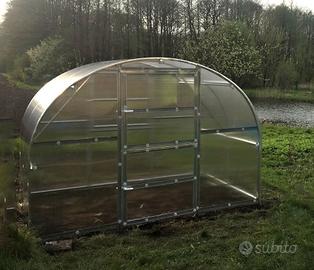 E' provvista di telaio in acciaio zincato e rivestimento con pannelli in policarbonato da 4 mm.