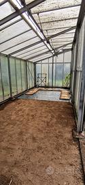 Serra usata con struttura in ferro zincato, pannelli in alluminio e policarbonato che permette alla luce solare di entrare e riscaldare l'ambiente interno. Crea un microclima ideale per la coltivazione delle piante, proteggendole da condizioni climatiche avverse come freddo, vento e intemperie.