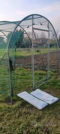 Vendesi serra con struttura rinforzata, rete antigrandine e telo in nylon, aperture laterali avvolgibili, porta larga 1 m con chiusura , tiranti di rinforzo, 4 diagonali di controventatura, piedini antivento, completamente smontabile.