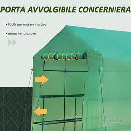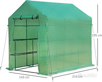 Serra Tunnel da Giardino per Piante e Orto, Serra da Balcone con 2 Ripiani Porta Vasi Copertura in PE Struttura in Acciaio, 214x143x195cm.