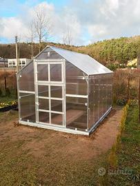 Serra robusta con struttura a CASETTA, ad USO PROFESSIONALE, con telaio in acciaio zincato e rivestimento con pannelli in policarbonato da 6 mm.