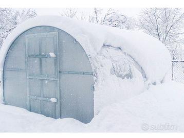 Concepita per l'uso in condizioni estreme alle latitudini nordiche, la serra ha una portata a carico neve fuori dal comune per le ns latitudini:180 kg/mq.