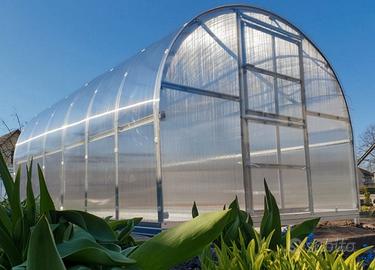 Serra gazebo robusta con struttura ad arco, ad USO PROFESSIONALE, con telaio in acciaio zincato e rivestimento con pannelli in policarbonato da 4 mm.