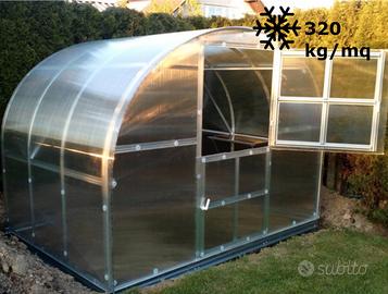 Serra orto concepita per l'uso in condizioni estreme alle latitudini nordiche, la serra ha una portata a carico neve fuori dal comune per le ns latitudini: 320 kg/mq.
