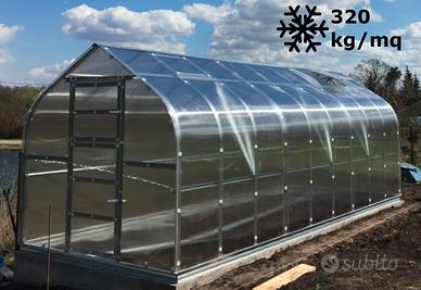 Concepita per l'uso in condizioni estreme alle latitudini nordiche, la serra ha una portata a carico neve fuori dal comune per le ns latitudini: 320 kg/mq.