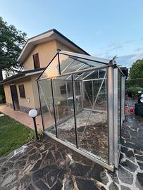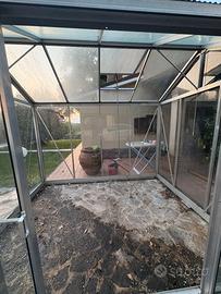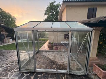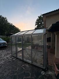 Vendo serra in alluminio con vetri dotata di due porte scorrevoli e un lucernario a tetto (apribile) Dimensioni: 240x310cm Altezza al colmo 250cm Altezza in grondaia 200cm