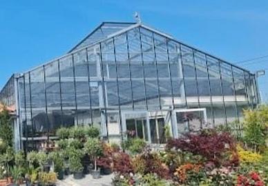 Serra in vetro e ferro zincato, con apertura/chiusura teli ombreggianti e tetto automatizzata, di circa 400mq.