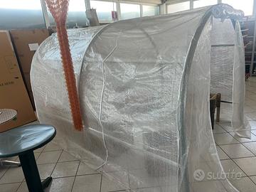 Vendo serra in robusta struttura in acciaio zincato e robusto telo trasparente. Misure lunghezza 3 m. Larghezza 2,20 m. Altezza 1,85 m. Nuova. Vendo per cessazione attività.
