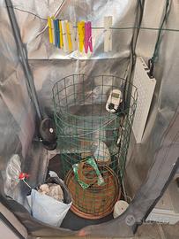 Grow box 60x60x160 integro e completo: Lampada sospesa MPV250W con suo trasformatore e regolatori di altezza + lampada piatta a Led multifrequenza laterale aggiuntiva, estrattore con filtro a carbone attivo antiodore, ventilatore ed umidificatore usb, termostato regola temperatura interna elettronico (da usare ad esempio con stufetta se posizionamento serra all’esterno), temporizzatore elettrico per regolazione orari luci, termometro digitale esterno.