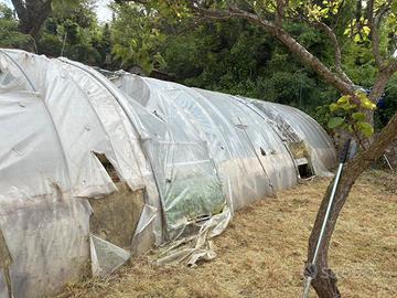 Vendo serra ma solamente la struttura in ferro, in quanto il telo con la grandine si è tutto strappato ben visibile nelle foto. Misura larghezza metri 5,50 X 12 metri, con quattro finestre per giro aria. La vendo completamente da smontare sul posto.