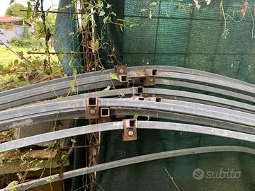 Vendo serra priva di copertura che completa misura 6 metri x 10 metri e altezza 240cm come da immagine e montando un arco con zampe e uno senza arriva a 6 metri per 20 metri. I due archi mostrati in foto non sono in vendita ma foto scattata per dimostrazione, il resto della struttura è già smontato. Archi vendibili anche separatamente. Per ulteriori info contattatemi.