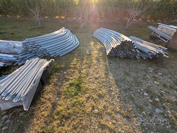 Vendo serra professionale della ditta LOMBARDA SERRE, larga 8 metri composta da 52 centine fatte di tubo diametro 60 mm. Il tubo della centina è diviso in 4 parti. Completa di candele verticali, tiranti orizzontali e asta sagomata di 2 metri che collega le centine. Il tutto è comodamente trasportabile su un furgone tipo Ducato,che abbia almeno 3 metri di spazio disponibile.