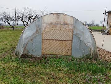 struttura per serra larghezza cm 360, lunghezza cm 600, altezza cm 200, nylon di copertura escluso. Necessità di qualche intervento conservativo( eventuale verniciatura, rivettatura in qualche punto).Non consegno