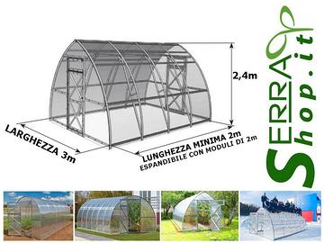 Serrashop presenta una serra davvero speciale , un articolo esclusivo adatto per l'utenza professionale ma anche per il privato. Le nostre serre sono adatte per orto , giardino , terreno agricolo e per una vasta tipologia di ortaggi e verdure oltre che a piante e fiori di ogni genere. I nostri clienti sono : agricoltori , vivai , agriturismi , cooperative agricole , consorzi e naturalmente privati che desiderano iniziare o continuare una sana coltivazione biologica. La nostra azienda mette a disposizione centinaia di tipologie di serra , da quelle con copertura in policarbonato ( il migliore e il più pesante in commercio ) a FILM professionale di prima qualità a rete antigrandine e teli ombreggianti. Inoltre tantissimi accessori. Tutto disponibile e scontabile sul nostro sito serrashop_it. Offriamo anche: -Servizio ricambi -Consegna in tutta ITALIA -SERVIZIO ASSISTENZA -Pagamento alla consegna/bonifico In questo annuncio proponiamo : Serra PREMIUM DATI TECNICI STRUTTURA : profili arcate acciaio zincato 60mm ARCATE: distanti 1m COPERTURA : Policarbonato pesante 4mm di 800g/mq ( disponibile versione 6mm 1300g) APERTURE : N° 2 porte con doppia anta e finestre per ventilazione. CARICO NEVE : 320kg MISURE Larghezza : 3m Altezza : 2,1m Lunghezza : minimo 2m espandibile di 2m in 2m Porta : 80xH180cm Maggiori dettagli e specifiche tecniche su nostro sito. Sul nostro sito potrai trovare altri modelli e misure per tutte le tue necessità. SPEDIZIONE Possiamo spedire in tutta Italia con un piccolo contributo spese. PAGAMENTI Bonifico Contrassegno INFORMAZIONI Per qualsiasi informazione il nostro staff è a completa disposizione, chiama contattaci tramite il nostro sito o tramite email. Visita il nostro sito , troverai centinaia di articoli per le tue necessità.