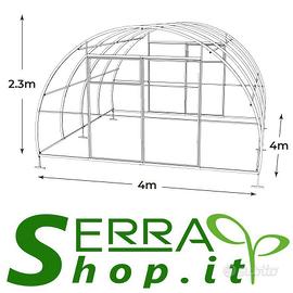 Serrashop presenta una serra davvero speciale , un articolo esclusivo adatto per l'utenza professionale ma anche per il privato. Le nostre serre sono adatte per orto , giardino , terreno agricolo e per una vasta tipologia di ortaggi e verdure oltre che a piante e fiori di ogni genere. I nostri clienti sono : agricoltori , vivai , agriturismi , cooperative agricole , consorzi e naturalmente privati che desiderano iniziare o continuare una sana coltivazione biologica. La nostra azienda mette a disposizione centinaia di tipologie di serra , da quelle con copertura in policarbonato ( il migliore e il più pesante in commercio ) a FILM professionale di prima qualità a rete antigrandine e teli ombreggianti. Inoltre tantissimi accessori. Tutto disponibile e scontabile sul nostro sito serrashop_it. Offriamo anche: -Servizio ricambi -Consegna in tutta ITALIA -SERVIZIO ASSISTENZA -Pagamento alla consegna/bonifico In questo annuncio proponiamo : Serra ComPRO DATI TECNICI STRUTTURA : profili arcate acciaio zincato 40x20mm ARCATE: distanti 1m COPERTURA : Policarbonato pesante 4mm di 800g/mq ( disponibile versione 6mm 1300g) APERTURE : N° 2 porte con doppia anta e finestre per ventilazione. CARICO NEVE : 220kg MISURE Larghezza : 4m Altezza : 2,3m Lunghezza : minimo 4m espandibile di 2m in 2m Porta : 190xH200cm Maggiori dettagli e specifiche tecniche su nostro sito. Sul nostro sito potrai trovare altri modelli e misure per tutte le tue necessità. SPEDIZIONE Possiamo spedire in tutta Italia con un piccolo contributo spese. PAGAMENTI Bonifico Contrassegno INFORMAZIONI Per qualsiasi informazione il nostro staff è a completa disposizione, chiama contattaci tramite il nostro sito o tramite email. Visita il nostro sito , troverai centinaia di articoli per le tue necessità.