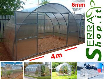 Serrashop presenta una serra davvero speciale , un articolo esclusivo adatto per l'utenza professionale ma anche per il privato. Le nostre serre sono adatte per orto , giardino , terreno agricolo e per una vasta tipologia di ortaggi e verdure oltre che a piante e fiori di ogni genere. I nostri clienti sono : agricoltori , vivai , agriturismi , cooperative agricole , consorzi e naturalmente privati che desiderano iniziare o continuare una sana coltivazione biologica. La nostra azienda mette a disposizione centinaia di tipologie di serra , da quelle con copertura in policarbonato ( il migliore e il più pesante in commercio ) a FILM professionale di prima qualità a rete antigrandine e teli ombreggianti. Inoltre tantissimi accessori. Tutto disponibile e scontabile sul nostro sito serrashop_it. Offriamo anche: -Servizio ricambi -Consegna in tutta ITALIA -SERVIZIO ASSISTENZA -Pagamento alla consegna/bonifico In questo annuncio proponiamo : Serra ComPRO DATI TECNICI STRUTTURA : profili arcate acciaio zincato 40x20mm ARCATE: distanti 1m COPERTURA : Policarbonato pesante 4mm di 800g/mq ( disponibile versione 6mm 1300g) APERTURE : N° 2 porte con doppia anta e finestre per ventilazione. CARICO NEVE : 220kg MISURE Larghezza : 4m Altezza : 2,3m Lunghezza : minimo 4m espandibile di 2m in 2m Porta : 190xH200cm Maggiori dettagli e specifiche tecniche su nostro sito. Sul nostro sito potrai trovare altri modelli e misure per tutte le tue necessità. SPEDIZIONE Possiamo spedire in tutta Italia con un piccolo contributo spese. PAGAMENTI Bonifico Contrassegno INFORMAZIONI Per qualsiasi informazione il nostro staff è a completa disposizione, chiama contattaci tramite il nostro sito o tramite email. Visita il nostro sito , troverai centinaia di articoli per le tue necessità.
