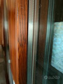Vendesi serramenti in legno color noce con cassonetto e tapparelle. Serramenti con doppio vetro, cassonetti in legno e tapparelle in PVC. n. 2 portafinestra, due ante, dimensione 138x235 cm; n. 1 portafinestra, due ante, dimensione 128x235 cm; n. 2 portafinestra, due ante, dimensione 158x235 cm; n. 2 finestre, una anta, dimensione 136x140; n. 2 finestre, una anta, dimensione 55x140. Prezzo in privato e trattabile.