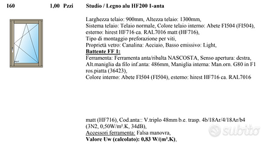 Vendo infissi marca INTERNORM, misure colori e finiture indicate nelle foto.